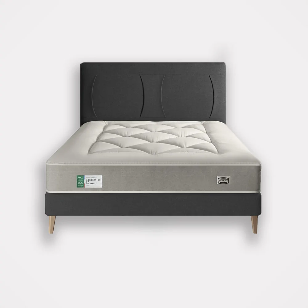 Découvrez le nouvel ensemble Génération, éco-conçu, composé d’un matelas Simmons, d’un sommier à lattes et d’une tête de lit, issus de matières recyclables et recyclées. Le matelas recyclable Génération est fabriqué sur notre site de production basé en France, à Saint-Amand-les-Eaux. A travers cette innovation, Simmons s’engage en faveur de la préservation de l’environnement et de votre bien-être. De l’approvisionnement durable en passant par l’éco-conception et le recyclage, tout le processus de fabrication a été entièrement repensé pour proposer un produit unique dans le secteur de la literie.